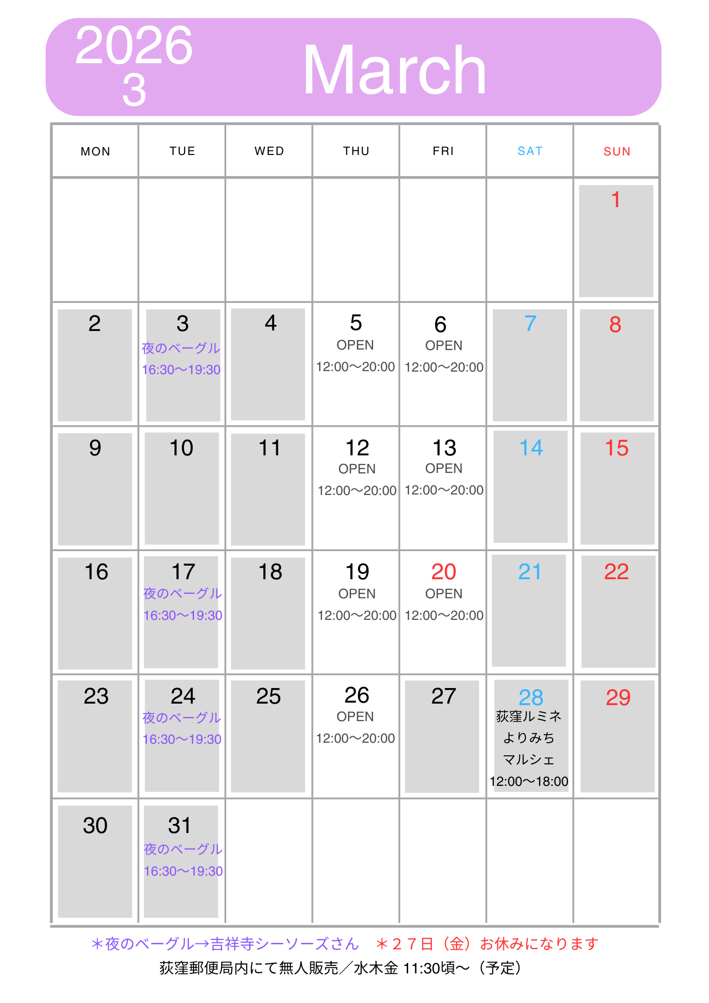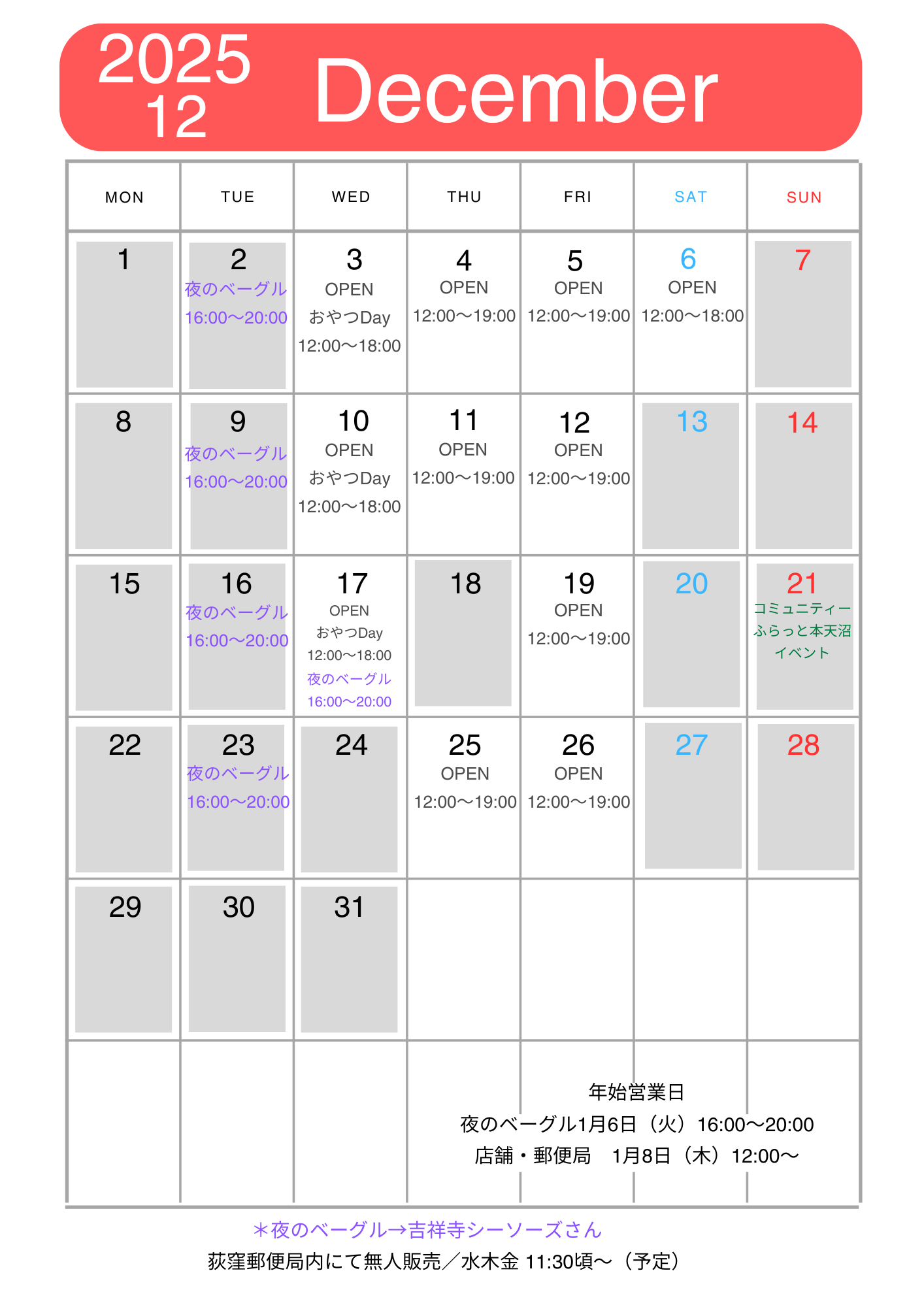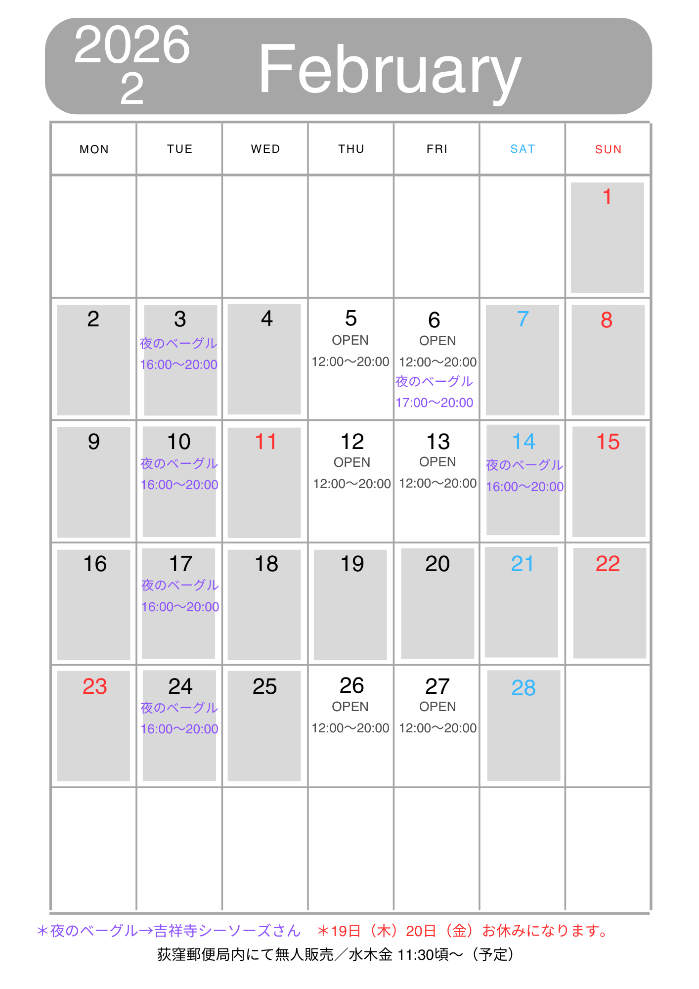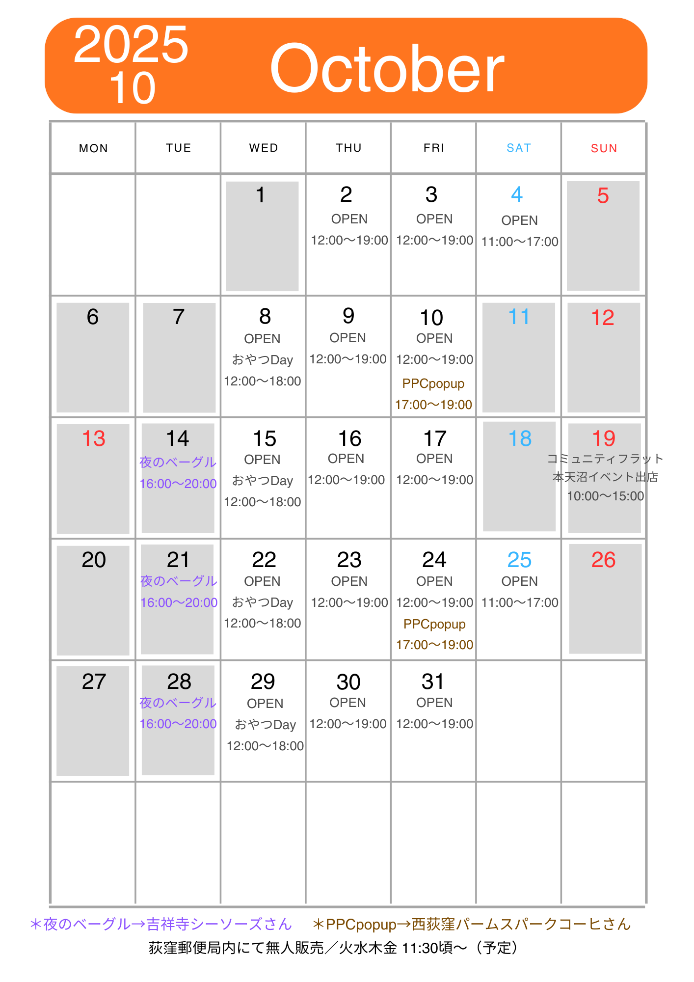 クリックで拡大表示*臨時開店、閉店やPOPUP販売、イベント出店などは「Instagram」「X」でご確認下さい。